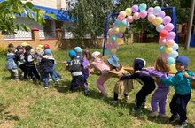 В нашем детском саду прошел традиционный праздник «Сабантуй». В программу праздника были включены: парад участников, торжественное открытие и закрытие праздника, поднятие и спуск флага, сценка сказочных героев, коллективные музыкальные выступления детей, командные соревнования и награждения. Ребята соревновались в силе, ловкости и выносливости, поиграли в игры соревновательного характера и показали свои умения в национальных играх. «Бой мешками», «Конные скачки», «Бег в мешках», «Кто быстрей донесёт свои воду в с коромыслами», «Юрта», «Перетяни канат», «Перенеси яйцо в ложке». У маленьких участников Сабантуя надолго останутся незабываемые впечатления об этом красивом национальном празднике.