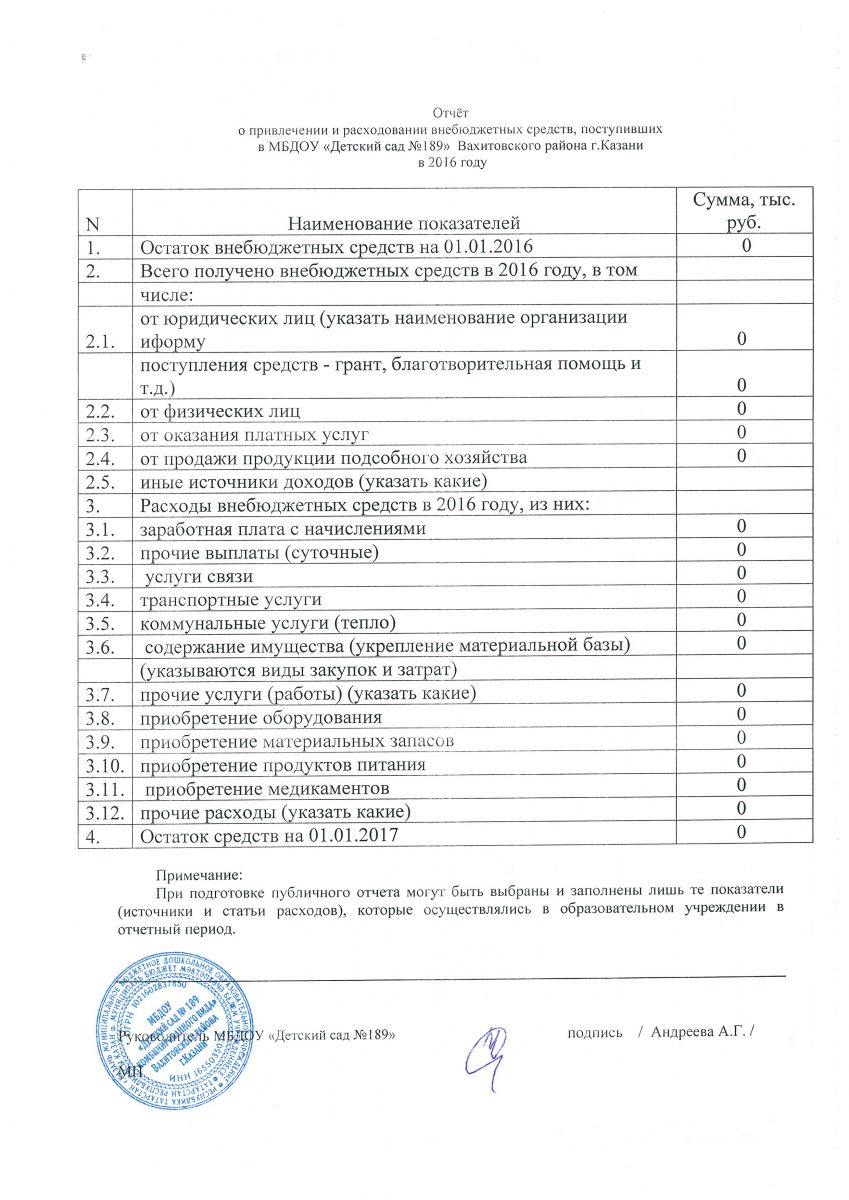 Отчет о привлечении и расходовании внебюджетных средств 2016