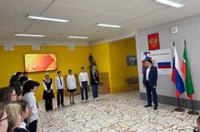 Cегодня прошла еженедельная церемония поднятия флагов и исполнения гимнов РФ и РТ. На церемонии присутствовали 6 классы.