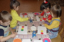 Программное содержание.Учить детей наклеивать изображение круглой формы,уточнить название формы,чередовать кружки по цвету.Закреплять знание цветов(красный,желтый,зеленый,синий)