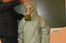 Длительность эвакуации составила 50 секунд. Учащиеся использовали ватно-марлевые повязки, противогазы. Кроме того, ученик 8 класса Гиззатуллин Ислам продемонстрировал применение ОЗК (общевойскового защитного костюма). Учитель ОБЖ Вильданов Динар Дарванович рассказал детям о том, что необходимо делать и как вести себя в экстремальных ситуациях.