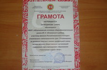 Ученицы 9 класса Загретдинова Арина и Мавлянбердыева Сабина по итогам финала Республиканского конкурса ученического самоуправления (рук. Г.В.Шакирова) были приглашены на проведение профильной смены актива детских общественных организаций "Галстучная страна" с 4 по 10 января 2016 года в г.Казань. За активное участие в жизни профильной смены актива детских общественных организаций и движений при учреждениях образования "Галстучная страна-2016" Загретдинова Арина награждена грамотой.