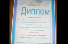 20 мая в межрегиональном семинаре среди учителей татарского языка и литературы в методической выставке "И туган җир! Синдә генә Дөньямның көйле гаме" наша школа заняла почетное II место