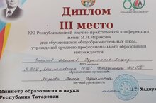 Обучающиеся Зарипов Я. (5 кл) и Рузиматов Х.(7 кл) приняли участие в XXI Республиканской НПК им. Морякова г.Лениногорский и заняли 3 место. Руководитель Якупова Р.И