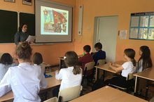 В 7-ом классе прошел информационный час, посвященный Дню славянской письменностии культуры с приглашением сельского библиотекаря Юсуповой Д.Р.. Она рассказала об истории этого праздника, подготовила интересную презентацию.