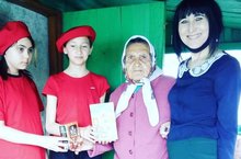 Юнармейцы ходили поздравить ветерана тыла с Днем Победы.