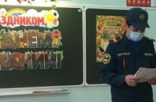 Выпсускник нашей школы Шайхуллин И.МЧС России провел беседе с начальными классами "Профессия пожарного".