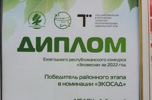 Диплом ежегодного республиканского конкурса "Эковесна 2022 год". Победитель районного этапа в номинации "Экосад"