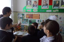 Библиотекарь Нурсаетова Л.Н. провела беседу у книжной выставки, учащиеся с интересом прослушали рассказ о детстве и юности Льва Толстого. Вспомнили произведения писателя, было задано домашнее задание, нарисовать наиболее запомнившегося персонажа.