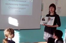 1 февраля для учащихся школы учителем начальных классов Багаувой Л.М. был проведен Урок мужества, которая включала презентацию о героизме советских людей в Сталинградской битве. Материал подготовлен с учетом возрастных особенностей детей. Проведена беседа, викторина по презентации.