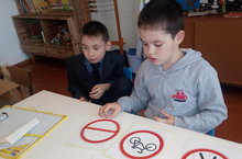 В рамках внеурочной деятельности с учащимися школы проводилось занятие по БДД «Дорожные знаки». Ребята повторили группы дорожных знаков и рассматривали дорожные ситуации.