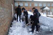 Сегодня, 10.04.14. в нашей школе в рамках экологического двухмесячника по санитарной очистке территории учащиеся и сотрудники школы вышли убирать пришкольную и закрепленную территорию. Был собран мусор, выметены площадки, разбросан снег.