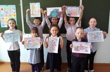 Учащиеся 3 класса подготовили выставку рисунков ко Дню космонавтики.