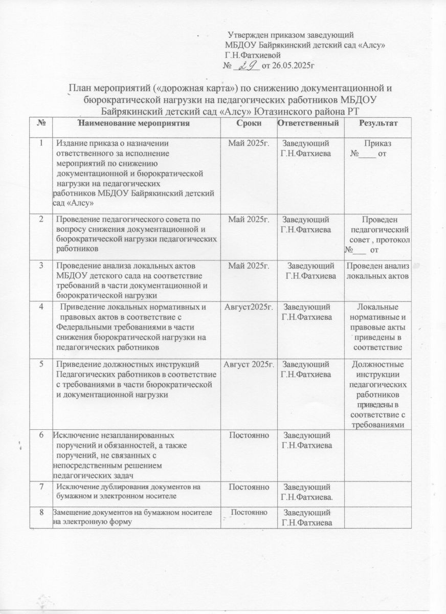 Дорожная карта по снижению бюрократической нагрузки педагогов