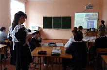 В рамках 75-летия разгрома советскими войсками немецко-фашистских войск в Курской битве на внеклассном мероприятии учащиеся 9-11 классов ознакомились с историей праздника. Вниманию учащихся была представлена презентация на тему «К 75-летию Курской битвы». Урок провела учитель истории Касимова С.Ш.