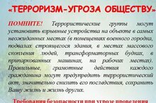 В настоящее время терроризм является одной из наиболее опасных угроз безопасности и стабильности в мире. Сегодня жертвами террористов в первую очередь оказываются мирные люди. Чаще всего они не знают, как вести себя при угрозе теракта или при совершенном террористическом нападении.