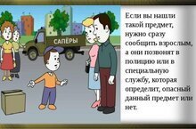 - Проводить разъяснительные беседы о недопустимости пользоваться незнакомыми предметами, найденными на улице или в общественных местах, брать у незнакомых людей на улице сумки, свёртки, игрушки.