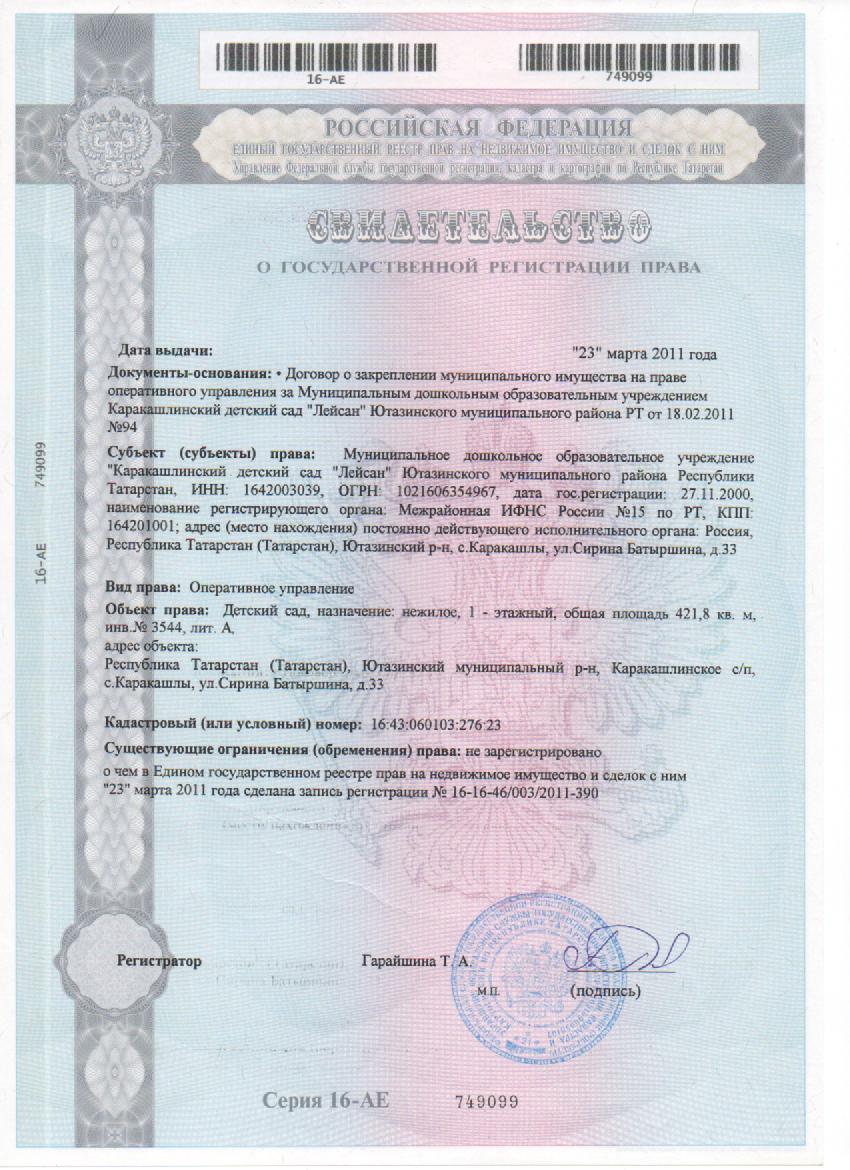 Короткое название: | МБДОУ Каракашлинский детский сад "Лейсан" |