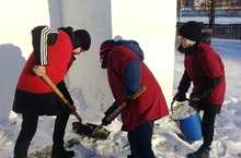 В День Героев Отечества отряд Юнармия очистил от снега памятник.