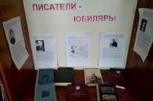 Укучылар өчен юбиляр язучыларның иҗаты буенча китап күргәзмәсе оештырылды (китапханәче: Насырова В.А.).