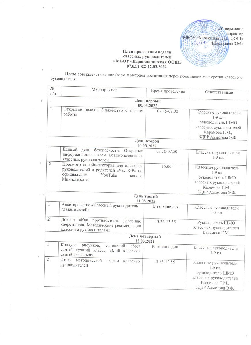 План недели классных руководителей/ Сыйныф җитәкчеләре атналыгының планы
