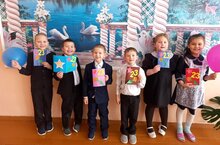 Башлангыч сыйныф укучылары Ватанны саклаучылар көненә открыткалар ясадылар.