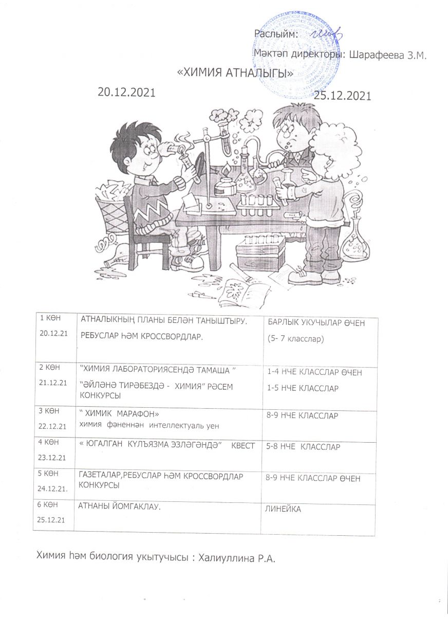 Химия атналыгы кысаларында 1-3 нче сыйныф укучылары өчен “Химия лабораториясендә тамаша” үтте. Башлангыч сыйныф укучылары кызыклы тәҗрибәләр белән таныштылар.