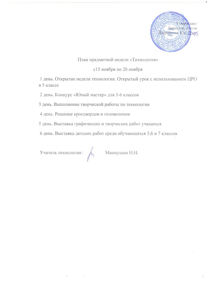 План недели технологии/ Технология атналыгы планы 15.11.2021