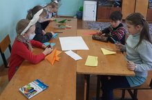 Для обучающихся начальных классов прошло занятие "Бумажные фантазии". Ребята сделали способом оригами цветы к празднику.