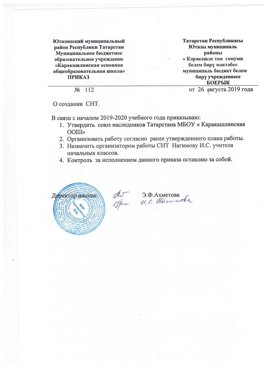 Муниципальное бюджетное общеобразовательное учреждение "Каракашлинская основная общеобразовательная школа" Ютазинского муниципального района Республики Татарстан /Татарстан Республикасы Ютазы муниципаль районы муниципаль бюджет гомуми белем бирү учреждениесе "Кәрәкәшле төп гомуми белем бирү мәктәбе"