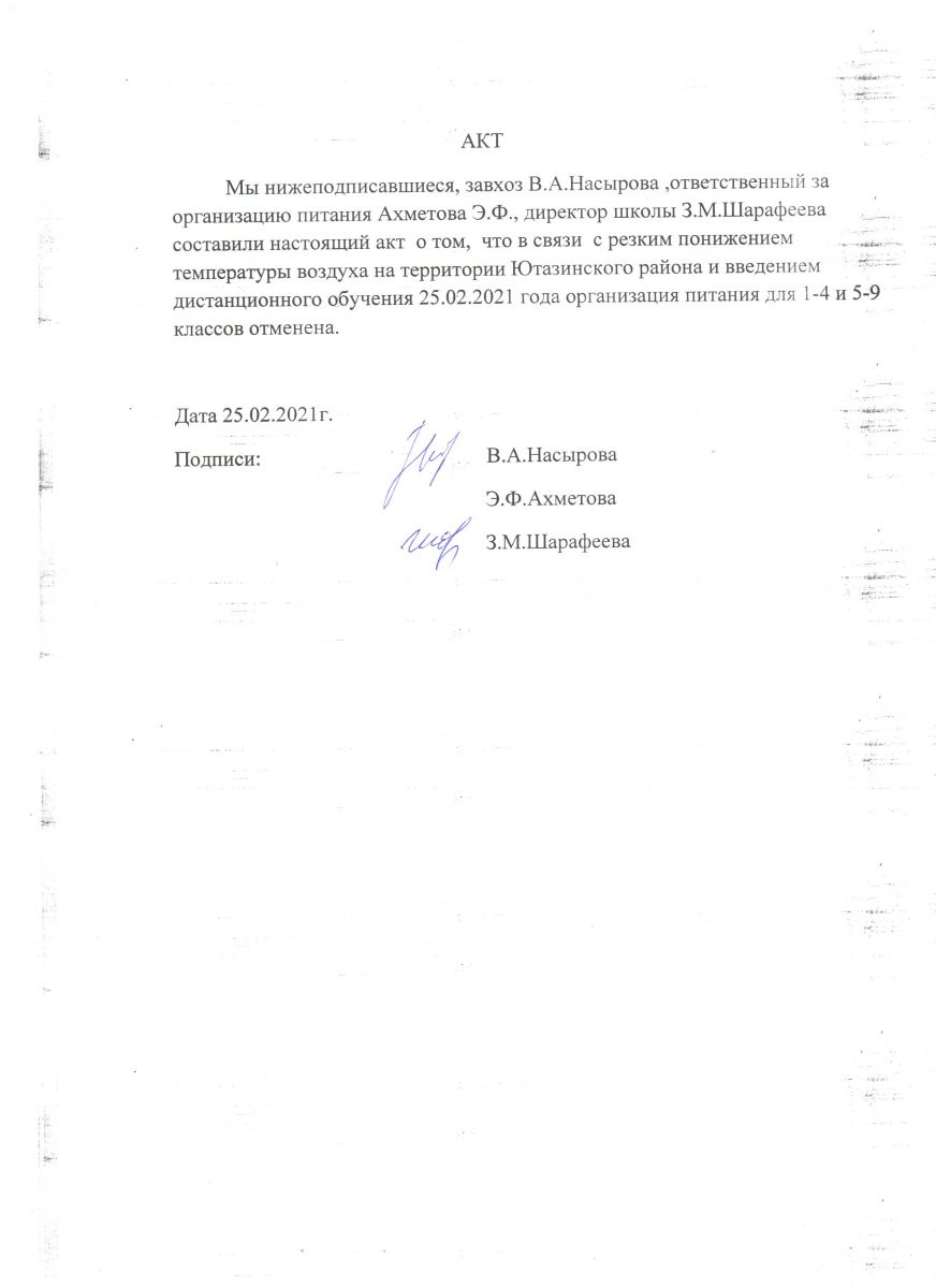 Акт об отмене питания в 1-9 классах на 25.02.2021 год.