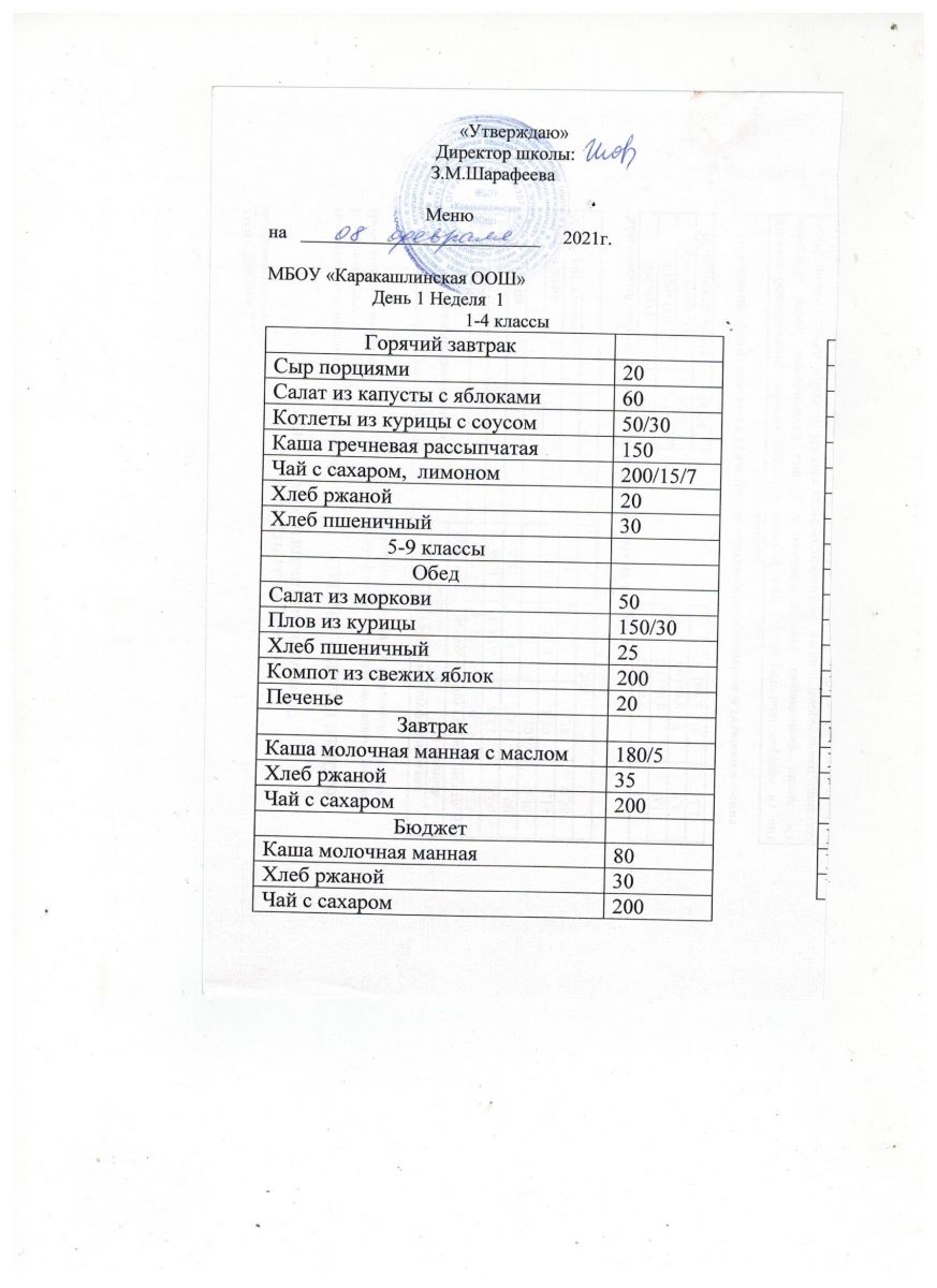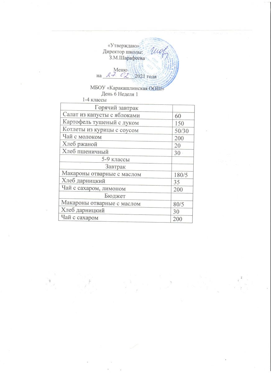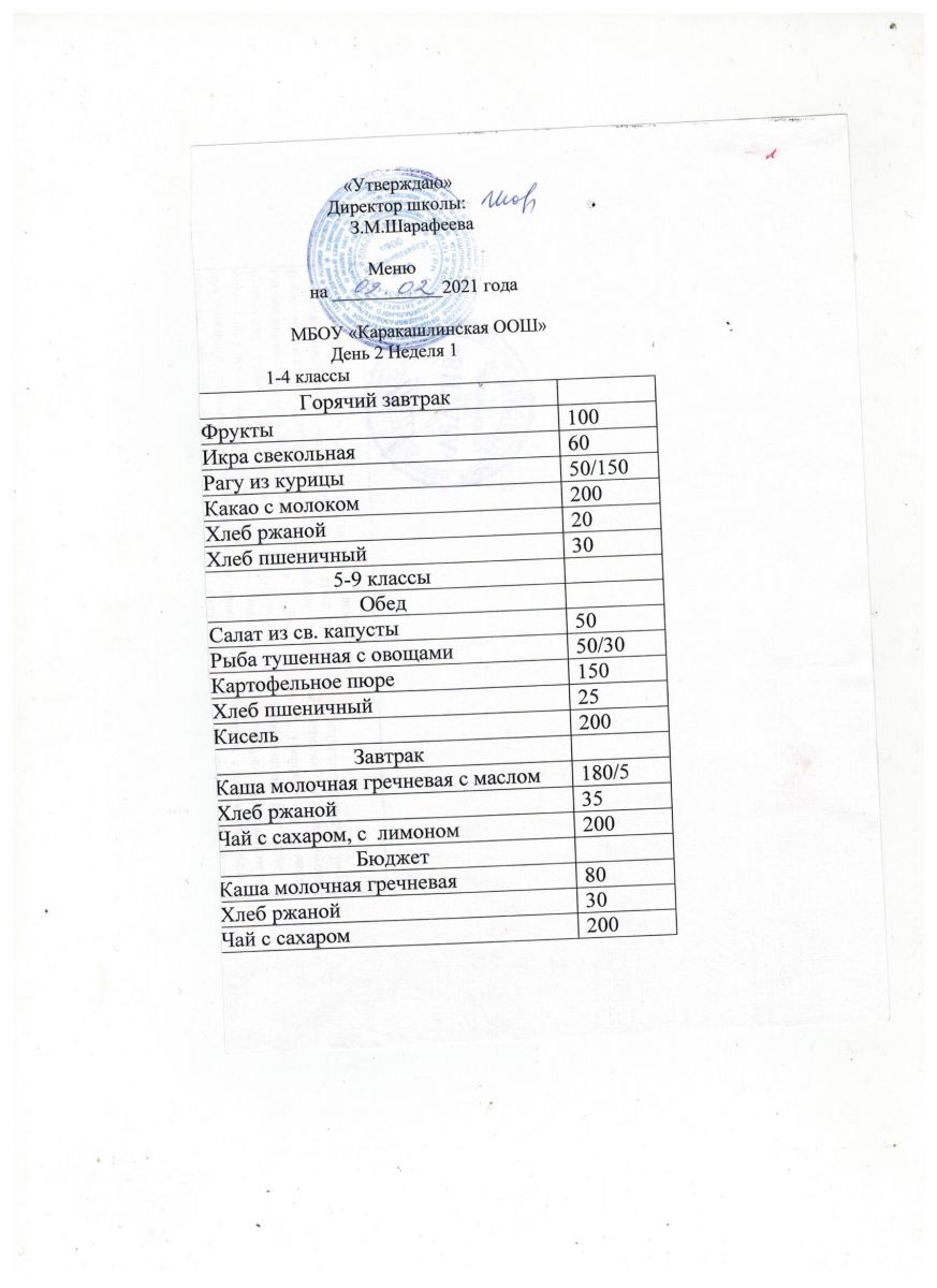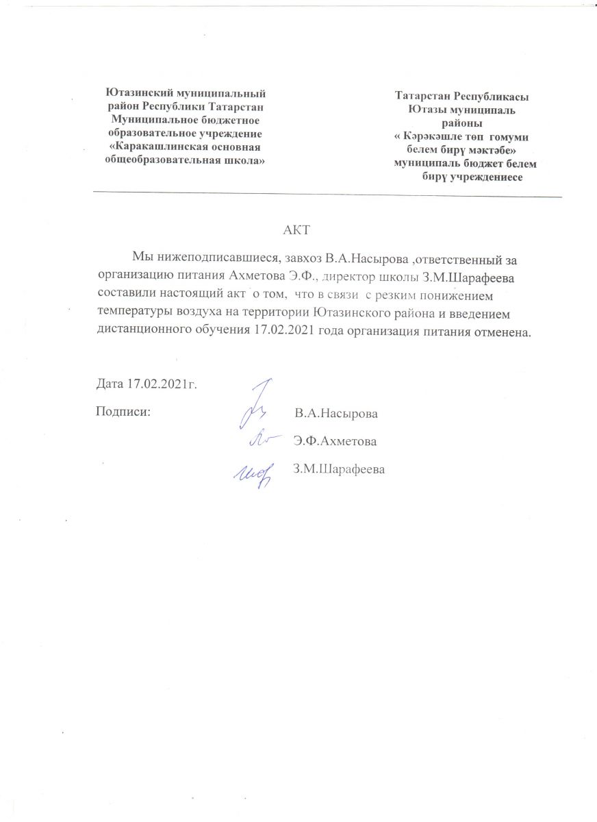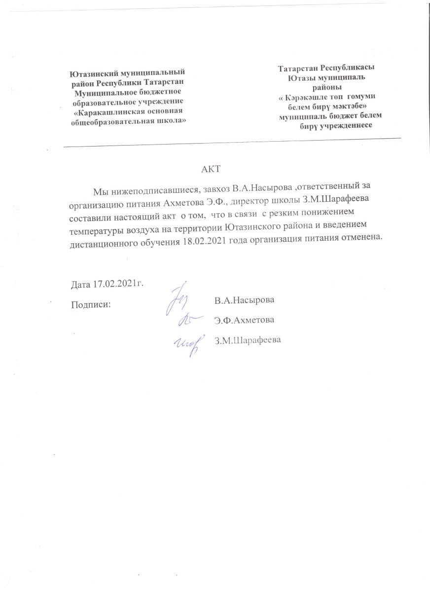 Акт об отмене питания в 1-9 классах на 24.02.2021 год.