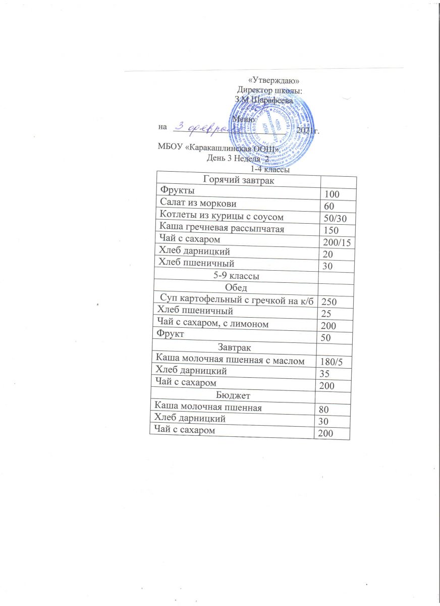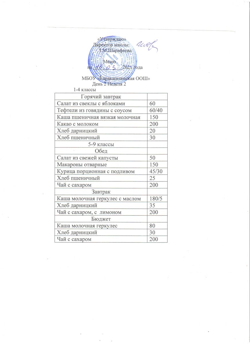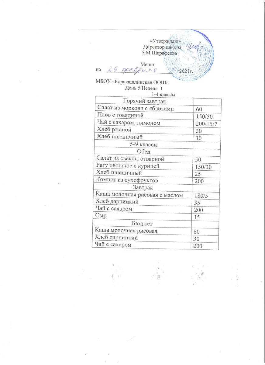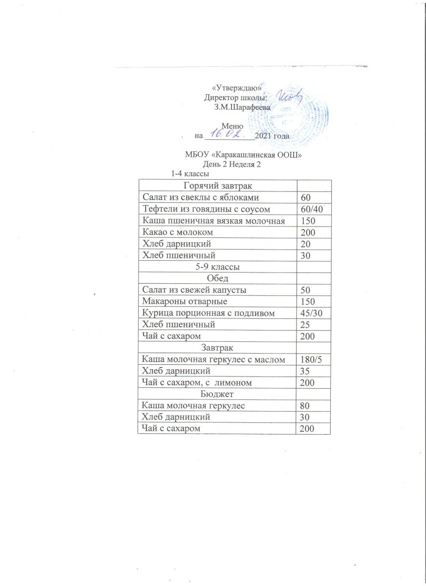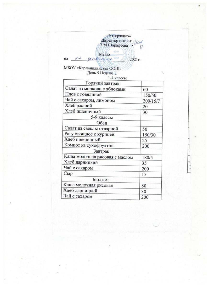 Акт об отмене питания в 1-9 классах на 24.02.2021 год.