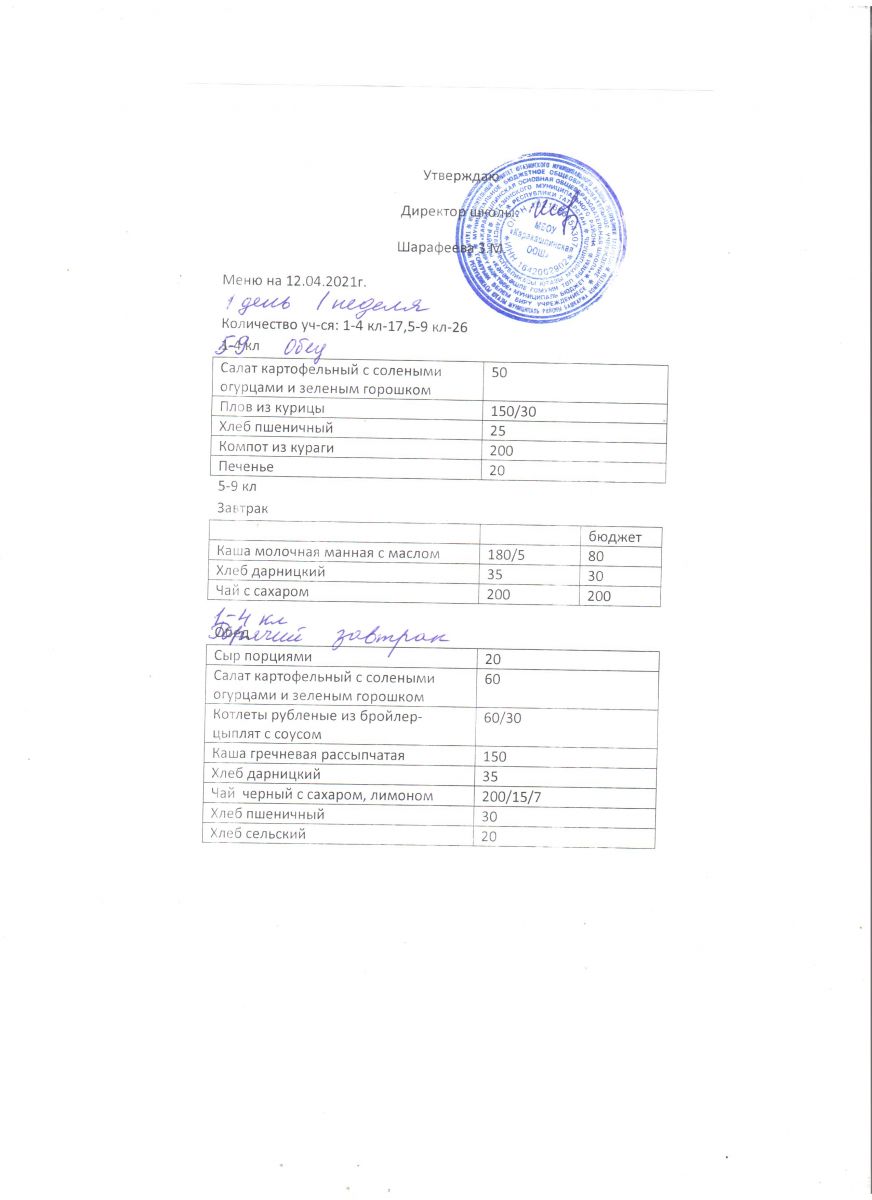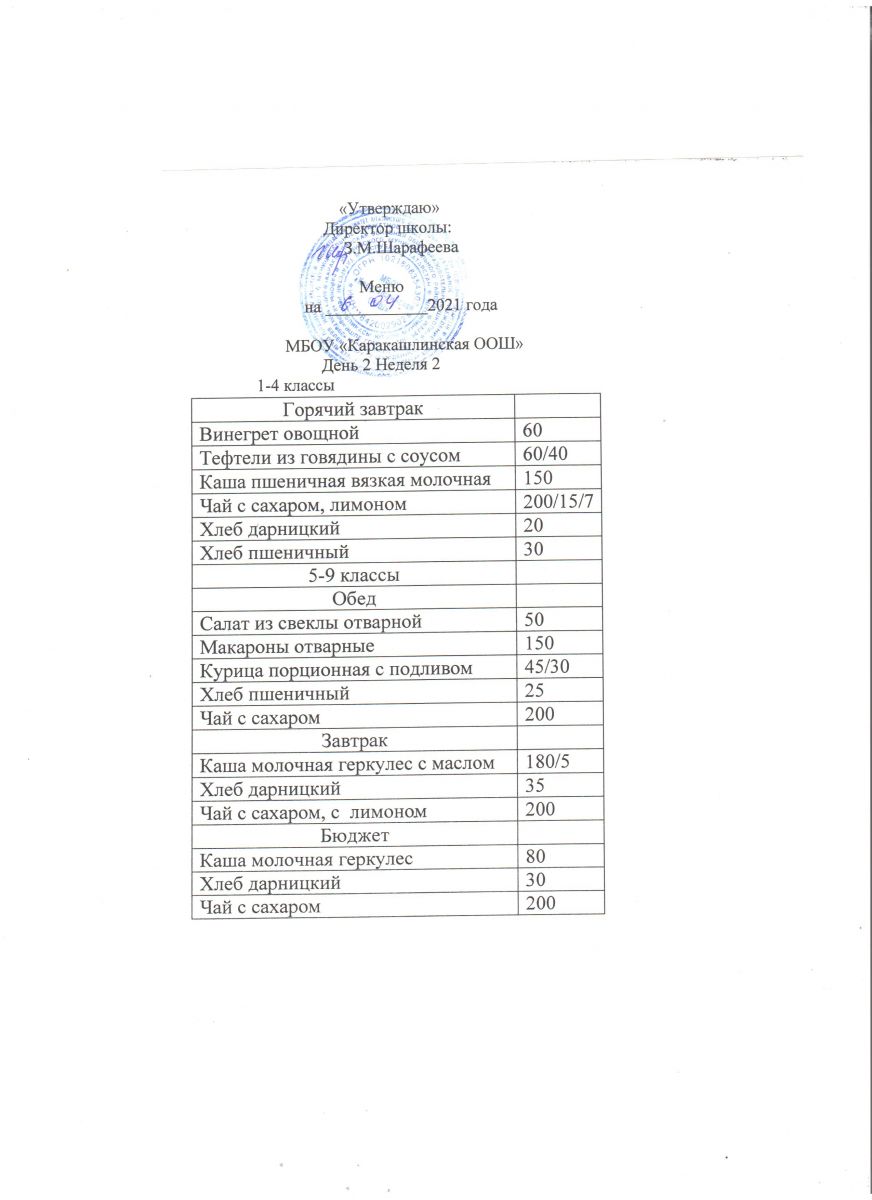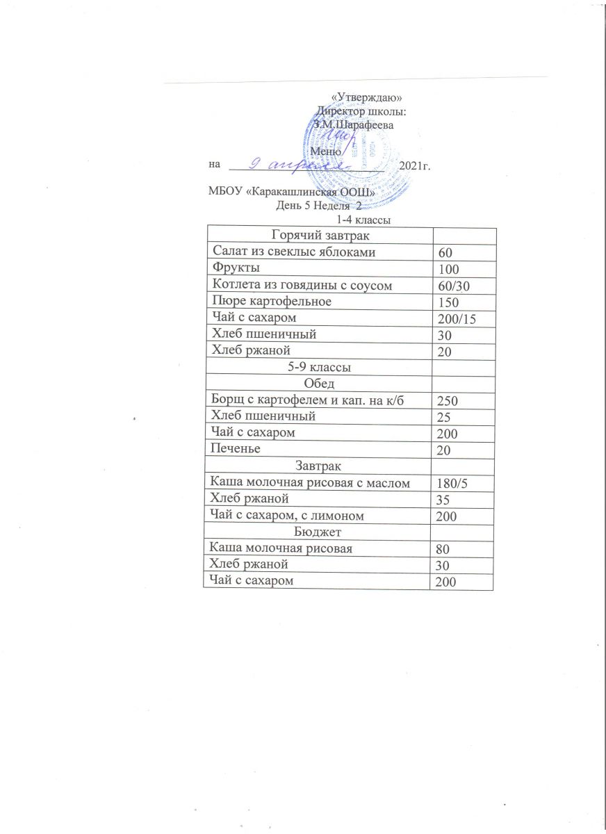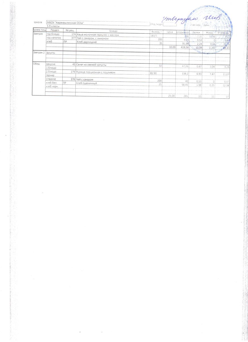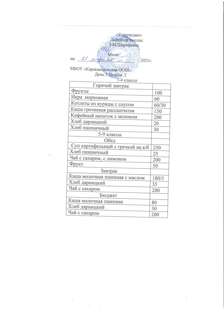 Акт об отмене питания в 1-9 классах на 24.02.2021 год.