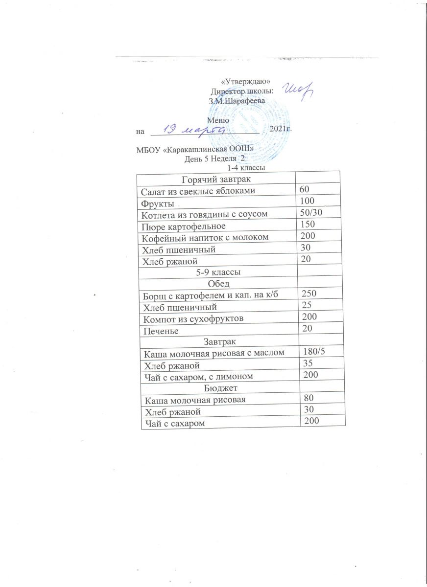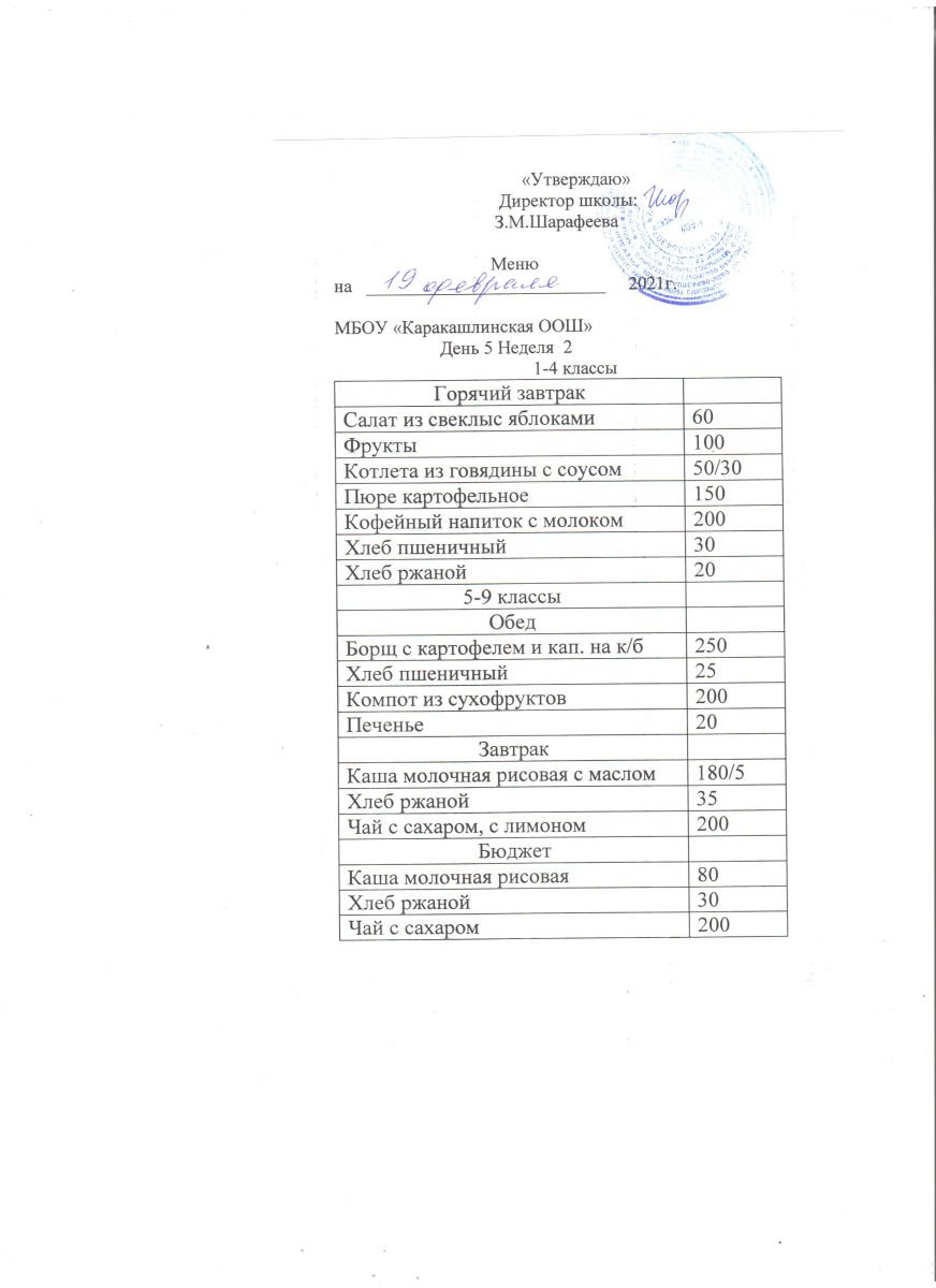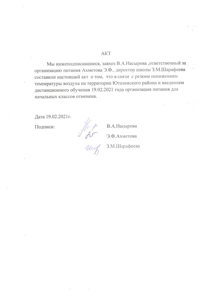Акт об отмене питания в начальных классах на 19.02.2021 г.