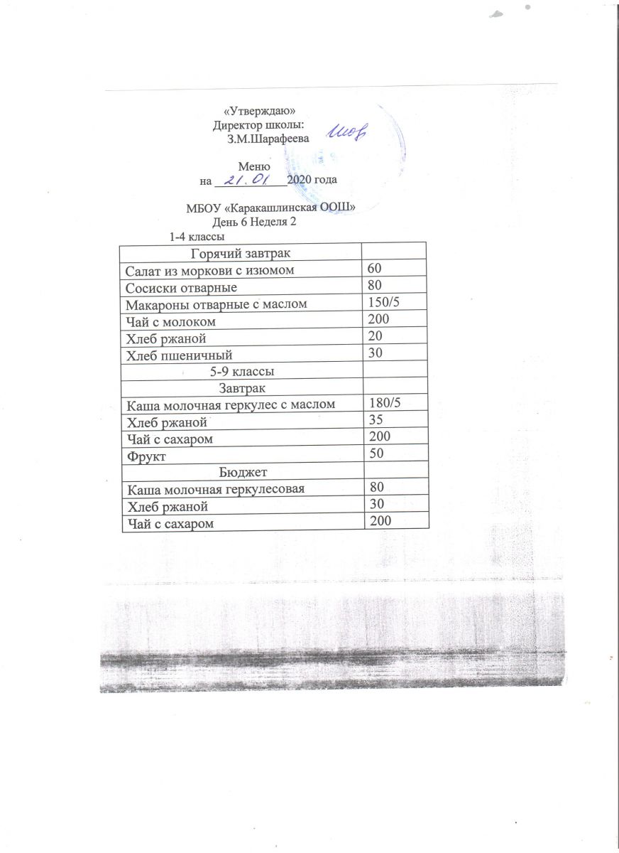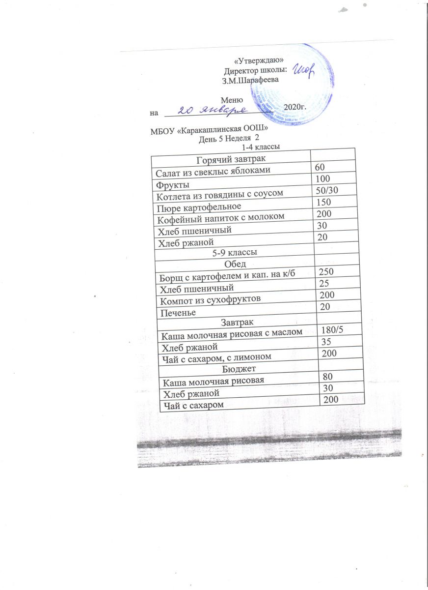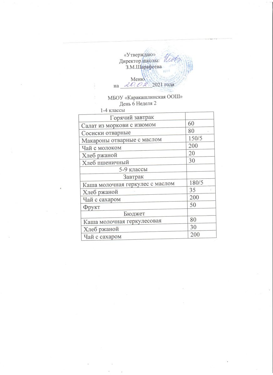 Акт об отмене питания в начальных классах на 20.02.2021 г.
