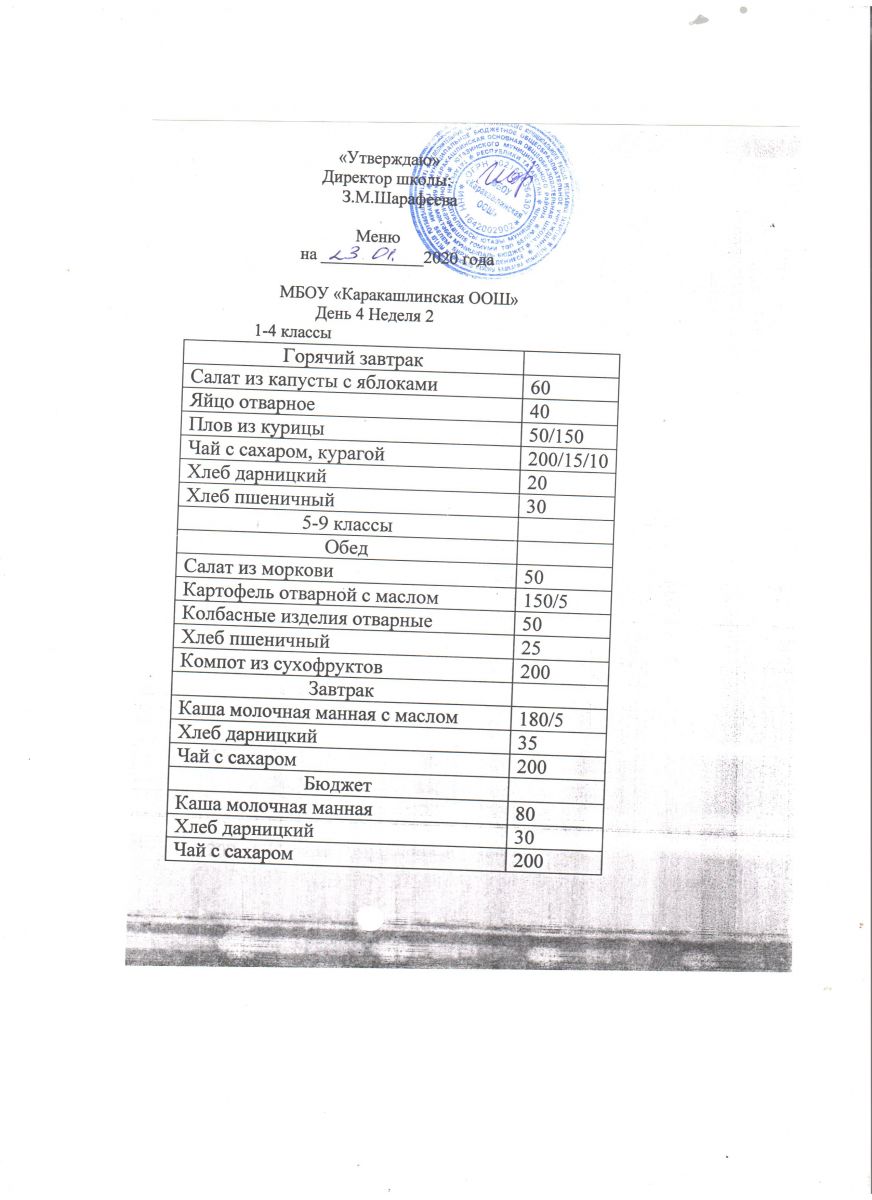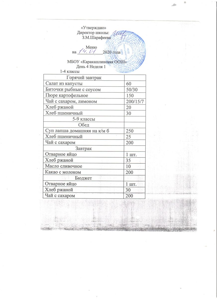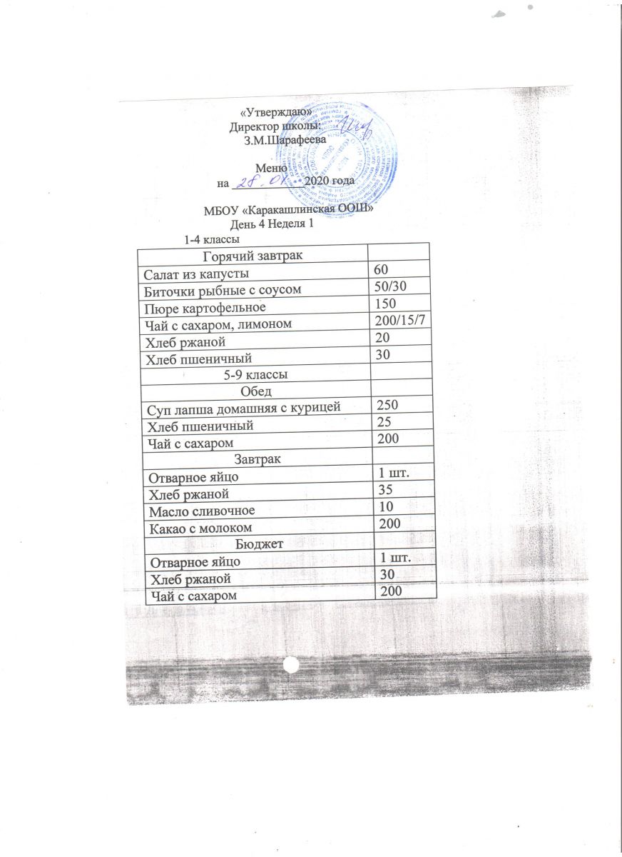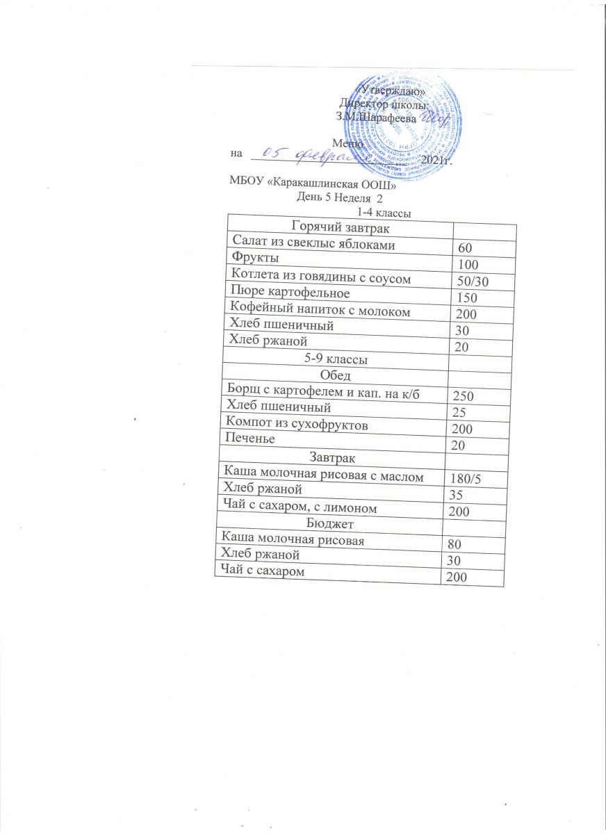Акт об отмене питания в начальных классах на 20.02.2021 г.