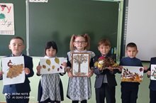 1 нче сыйныф укучылары көзге яфраклардан аппликация ясадылар.