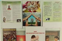 С помощью учащихся 8 класса организована библиотечная выставка "Мир без насилия"