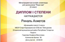 Победитель метапредметной олимпиады для школьников "Реши сам" 02.07.2020