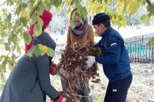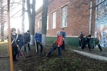 Волонтерский отряд на уборке территории школы