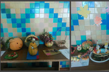 “Тылсымлы куллар” түгәрәгенә йөрүче укучылар мәктәп фойесында“Көз бүләкләре” дип исемләнгән күргәзмә оештырдылар. Монда ниләр генә юк. Кабак малай, миләш җимешләре һәм яфрагыннан картина, бәрәңгедән дуңгыз балалары, төрле-төрле яфраклардан композиция урын алган.(Җитәкчесе Ф.Р.Гарафиева)
