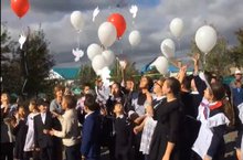 В этот день учителя, дети и техперсонал собрались возле школьного крыльца.
