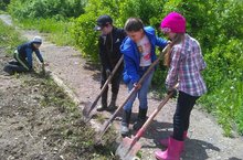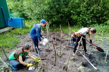 • Трудовой десант - Произвели побелку стволов деревьев, подсаживали томаты