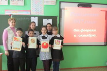 Бөек Октябрьнең 100 еллыгын искә алу уңаеннан 11 нче сыйныф укучылары 4 нче класс укучыларына “Календарьдәге истәлекле көн” исемле тәрбия сәгате әзерләде. Тәрбия сәгате укучыларның илебездә узган тарихи вакыйгалардан хәбәрдар булуы, патриотизм хисләрен үстерү максатыннан оештырылды. Укучыларга революция хакында презентацияләр күрсәтелде, В.И. Ленинның эшчәнлеге хакында сөйләнде, социализм чорындагы мактау грамоталары, гербтагы сурәтләргә аңлатмалар бирелде. Класс җитәкчесе Гарәфиева Ф.Р.