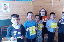 1 нче сыйныф укучылары технология дәресендә" Язның буяулары "темасына аппликация ясадылар.