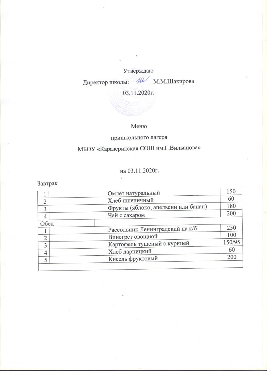 Меню пришкольного лагеря на 03.11.2020