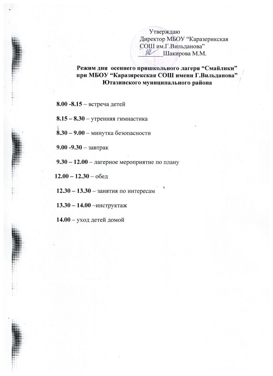 Приказ на осенние пришкольные лагеря.