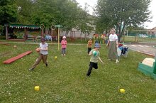 Сегодня на игровой площадкес дети с большим удовольствием играли различные спортвные игры.