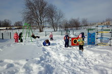 Игры на спортивной площадке, установленной в центре нашего села.